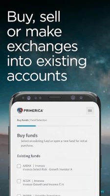 You can trust Primerica to handle your mutual fund investments. We value your confidence in us, and we’re here to make investing simple. On this app, you can view current and historical balances, complete transactions, and view your transaction history online.