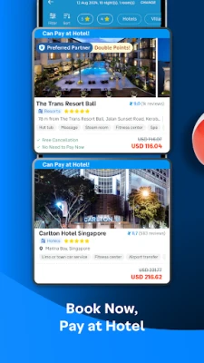Enjoy flexible options like "Pay at Hotel" and "Pay Near Stay Date" to book last-minute. Daily hotel promos available from major chains including Accor and Ibis.